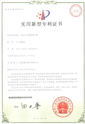 杭州海沃流體控制設(shè)備有限公司(富陽(yáng)派沃閥門(mén)有限公司)于2012年11月向國(guó)家知識(shí)產(chǎn)權(quán)局就公司技術(shù)部新開(kāi)發(fā)改進(jìn)的多種自力式壓力調(diào)節(jié)閥及氮封裝置提出專利申請(qǐng)報(bào)批,并于2013年5月獲得國(guó)家知識(shí)產(chǎn)權(quán)局頒發(fā)的實(shí)用新型專利證書(shū)。近些年來(lái)杭州海沃逐步加大對(duì)技術(shù)研發(fā)的投入,在公司全體技術(shù)人員的努力下,取得了不少實(shí)質(zhì)性的成績(jī),主要表現(xiàn)在無(wú)論是產(chǎn)品設(shè)計(jì)理念還是產(chǎn)品質(zhì)量把關(guān)方面都力求完美,公司相關(guān)產(chǎn)品得到了客戶的一致好評(píng),石油化工、冶金等行業(yè)龍頭公司代表紛紛來(lái)杭州海沃公司考察,并愿在今后的一些項(xiàng)目中加大與杭州海沃的深入合作,取得互利雙贏的結(jié)果。