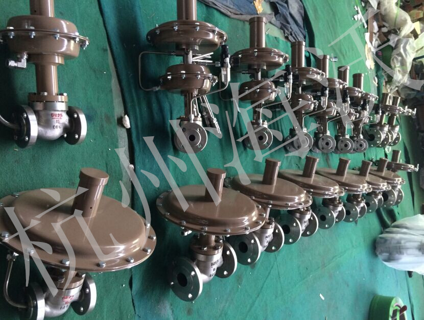 氮封裝置(氮封閥)是由G型指揮器操作型自力式壓力調節(jié)閥(這里簡稱供氮閥)和X型自力式微壓調節(jié)閥(簡稱泄氮閥)兩大部份組成。當罐內壓力升高超過設定值時,供氮閥關閉,泄氮閥打開(罐頂未設呼吸閥,或呼吸閥故障打不開),將罐內多余壓力泄放。在儲罐內壓力降低時,泄氮閥處于關閉狀態(tài),供氮閥打開,向罐內注氮氣。供氮閥閥前壓力最好在1.0Mpa以下,現(xiàn)場壓力較高時,可在供氮閥前安裝一只ZZYP型自力式壓力調節(jié)閥將壓力減至。1.0 Mpa以下,以提高可靠性和使用效果。