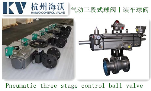 氣動(dòng)三位式裝車(chē)球閥是一種能實(shí)現(xiàn)兩步開(kāi)或兩步關(guān)動(dòng)作的切斷閥,可以在打開(kāi)或關(guān)閉過(guò)程中停頓一次,根據(jù)系統(tǒng)要求精確控制流量,尤其適用于化工或油品裝車(chē)系統(tǒng)中,使開(kāi)閥、關(guān)閥速度減緩,管道流體變化平穩(wěn),不會(huì)因沖擊產(chǎn)生水錘現(xiàn)象是易燃流體發(fā)生爆炸;例如閥門(mén)一次全部打開(kāi),開(kāi)始裝車(chē),當(dāng)流量接近設(shè)定值時(shí),閥門(mén)關(guān)閉到小流量狀態(tài),當(dāng)達(dá)到設(shè)定值時(shí)閥門(mén)全部關(guān)閉。小流量可以在0~45%之間現(xiàn)場(chǎng)設(shè)定,比如5%,8%,10%,15%等,最終達(dá)到精確控制。