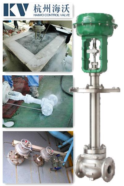 氣動薄膜低溫調(diào)節(jié)閥是一種在低溫、深冷場合使用的調(diào)節(jié)閥。采用長頸閥蓋保溫,配用多彈簧 執(zhí)行結(jié)構(gòu),具有總體結(jié)構(gòu)緊湊、重量輕、穩(wěn)定性好等優(yōu)點。閥體采用精密鑄造角形結(jié)構(gòu),材料為鋁合金,具有良好的耐低溫性。波紋管密封保證了調(diào)節(jié)閥在低溫場合不外漏。因而廣泛應(yīng)用于冶金、空分、制氧、石油、化工等低溫、深冷場合。特別適用于精確控制低溫氣體、流體(如液氧、液氬等)的工藝參數(shù)保持在給定值。