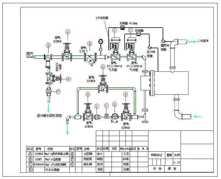 溫度調節(jié)閥組合使用氣動調節(jié)閥的溫控式換熱器系統(tǒng)圖