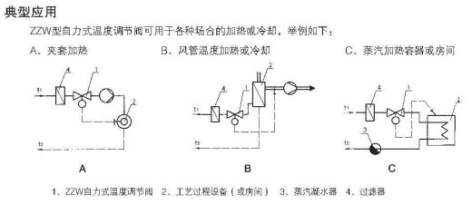 自力式電動(dòng)溫度調(diào)節(jié)閥(適用于較大口徑及導(dǎo)熱油控制),該閥最大的特點(diǎn)只需普通220V電源,利用被調(diào)介質(zhì)自身能量,直接對(duì)蒸汽、熱水、熱油與氣體等介質(zhì)的溫度實(shí)行自動(dòng)調(diào)節(jié)和控制,亦可使用在防止對(duì)過(guò)熱或熱交換場(chǎng)合,該閥結(jié)構(gòu)簡(jiǎn)單,操作方便,選用調(diào)溫范圍廣、響應(yīng)時(shí)間快、密封性能可靠,并可在運(yùn)行中隨意進(jìn)行調(diào)節(jié),因而廣泛應(yīng)用于化工、石油、食品、輕紡、賓館與飯店等部門(mén)的熱水供應(yīng)。