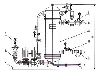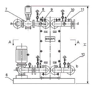 1.循環(huán)水泵2.除污器3.溫度表4.底座5.減震喉6.壓力表7.電動調(diào)節(jié)閥8.壓力變送器9.管式換熱器