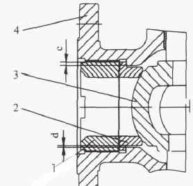 (2)閥座與閥體間的密封采用硬密封結(jié)構(gòu),適合高溫、高壓工況。閥座與閥體密封接觸面尺寸c值小,各自密封面精度要求高,在裝配時,護圈用電動沖擊扳手安裝,不僅是護圈與閥體嚙合,防止松動,而且是閥座摩擦轉(zhuǎn)動,符合機械振動嚙合原理,使閥座與閥體可靠密封。