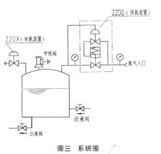 當(dāng)儲罐出液閥開啟,用戶放料時(shí),液面下降,氣相部分容積增大,罐內(nèi)氮?dú)鈮毫档�,供氮閥開啟,向儲罐注入氮?dú)�,罐�?nèi)氮?dú)鈮毫ι仙?dāng)罐內(nèi)壓力上升至供氮閥壓力設(shè)定值時(shí),供氮閥自動關(guān)閉。