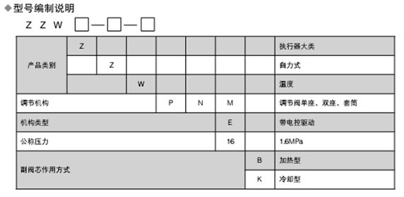 三、自力式電控溫度調(diào)節(jié)閥的型號(hào)編制: