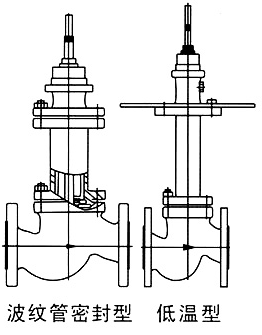 * D型 低溫型采用長頸閥蓋加波紋管封密結(jié)構(gòu)可用于-196℃的深冷場合