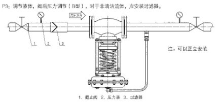 3、自力式壓力調節(jié)閥安裝于液體管道(減壓型):