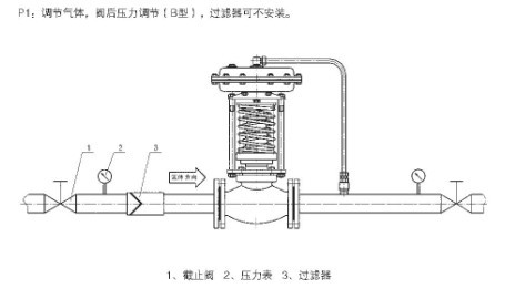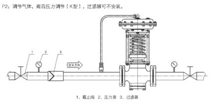 2:自力式壓力調節(jié)閥安裝于氣體管道(泄壓型):