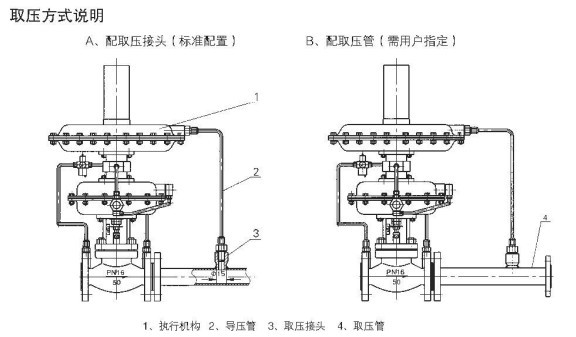 ZZY-II型自力式帶指揮器型壓力調(diào)節(jié)閥取壓方式說明: