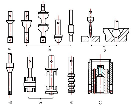 a)平板型閥芯、b)柱塞型閥芯 、c)球型、針型閥芯 、 d)圓柱體上銑出小槽閥芯 、e)窗口型閥芯、f)多級(jí)閥芯、g)套筒閥閥芯