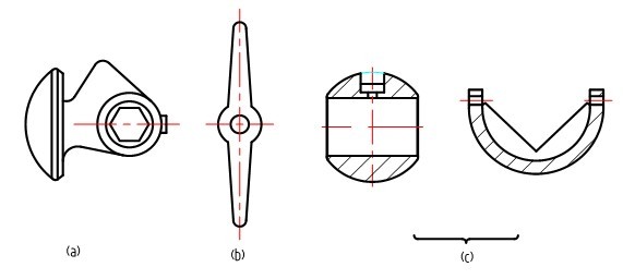 a)偏心旋轉(zhuǎn)閥芯、b)中線式蝶型閥板、c)球型閥芯