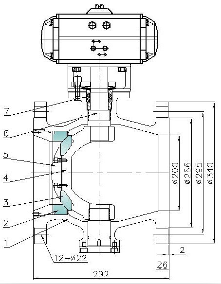 一、氣動耐磨專用陶瓷球閥結(jié)構(gòu)簡圖: