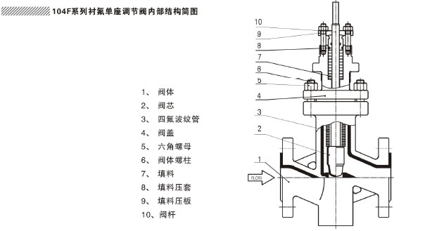 ZJHPF型氣動(dòng)薄膜襯氟單座調(diào)節(jié)閥內(nèi)部結(jié)構(gòu)簡圖: