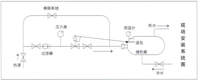 (3)為使自控系統(tǒng)或檢修閥門時(shí)仍能連續(xù)運(yùn)行,應(yīng)設(shè)置旁通閥、閥前須裝過濾器、壓力表,在傳感器附近裝測溫計(jì),便于現(xiàn)場監(jiān)視與溫度設(shè)定。見下圖: